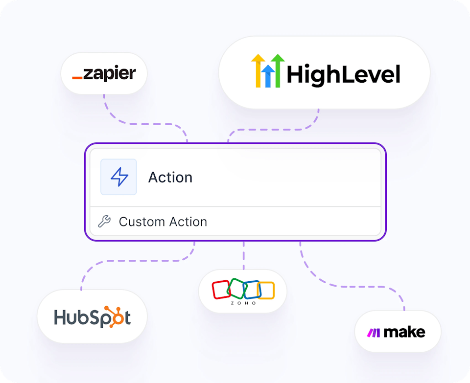 Seamlessly boost your business productivity with our native API integrations to HubSpot, GoHighLevel, Zoho, and many more.